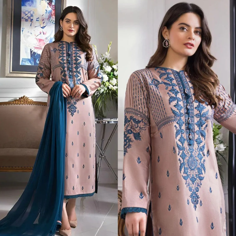 3PCS Asim Jofa Lawn Embroidered With Chiffon Dupatta Lawn Collection ULM-1062