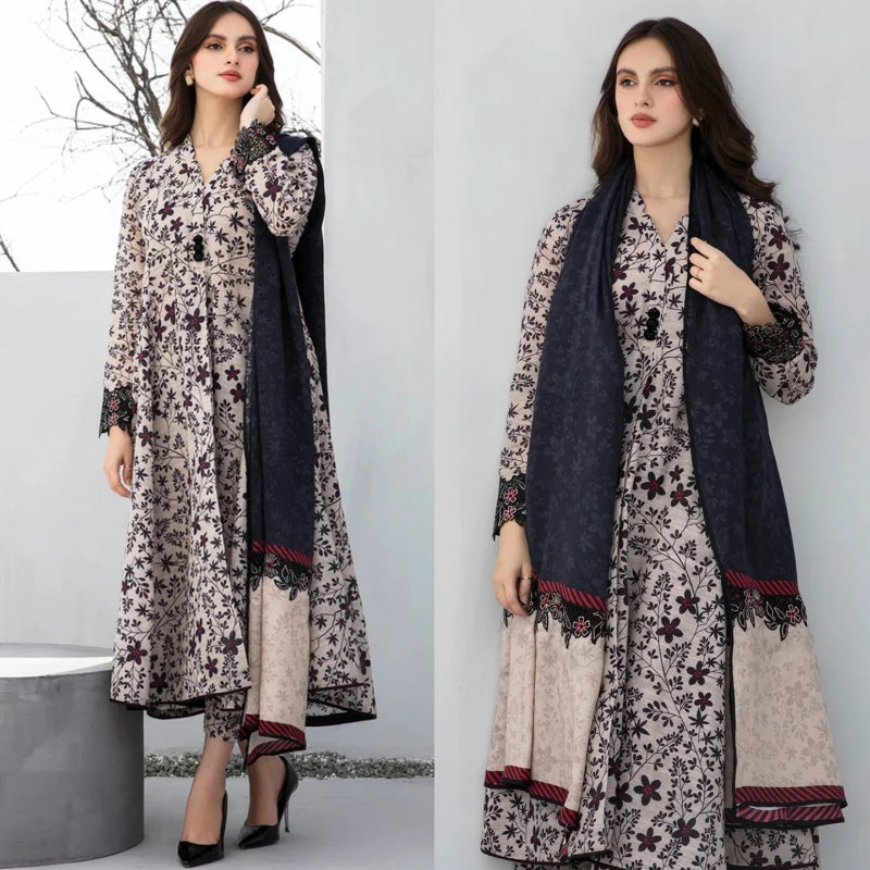 3PCS BAROQUE KARANDI PRINTED SHIRT WITH KARANDI PRINTED DUAPTTA AND TROUSER Winter Collection ULM-802