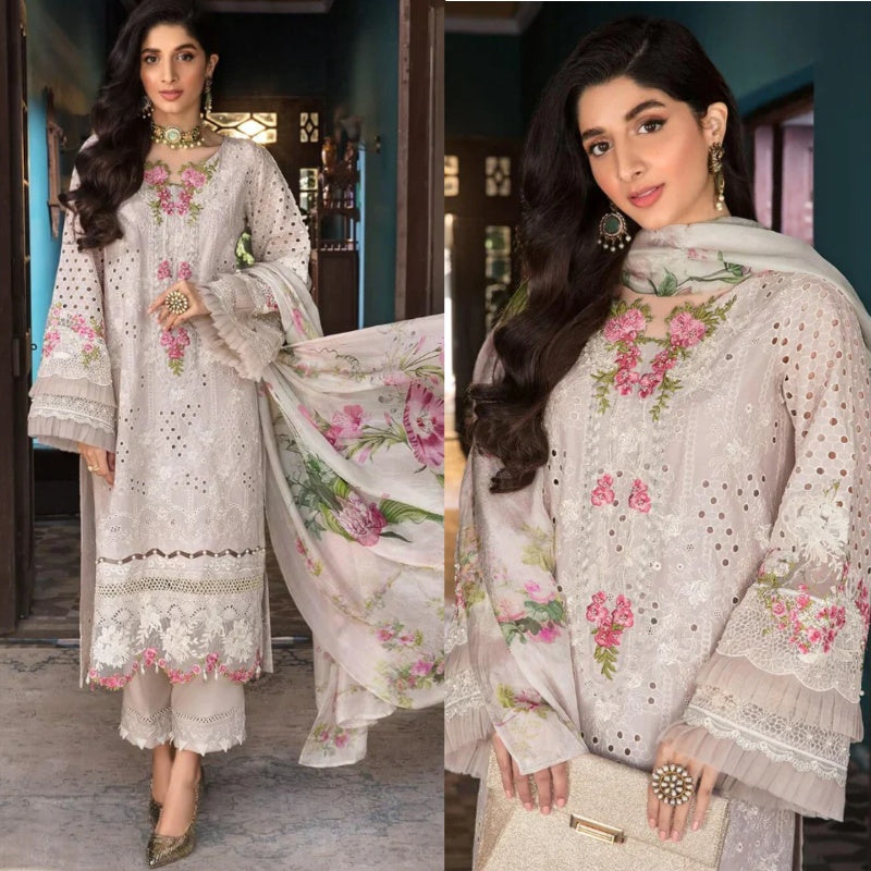 3PCS ELAF Chikankari Embroidered With Digital Printed Dupatta Lawn Collection ULM-1056