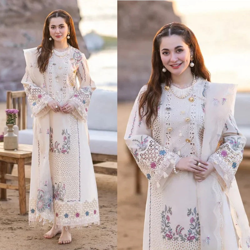 3PCS QALAMKAR Dhanak Embroidered Shirt With Organza Embroidered Dupatta Winter Collection BULM- 3115