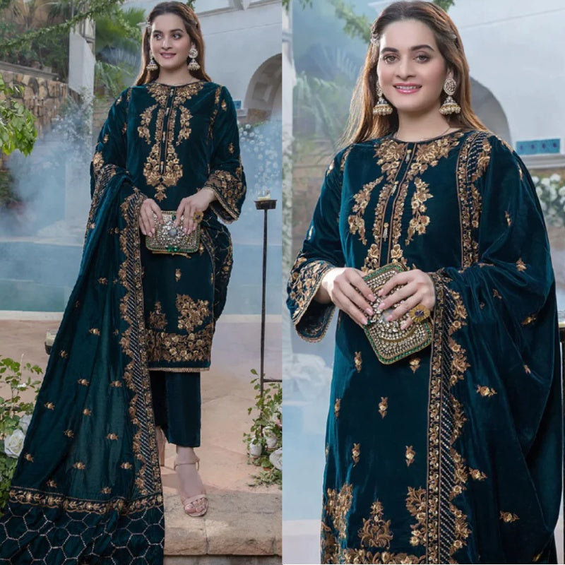 3PCS AZURE VELVET EMBROIDERED WITH VELVET EMBROIDERED DUPATTA LC Winter Collection BULM-950